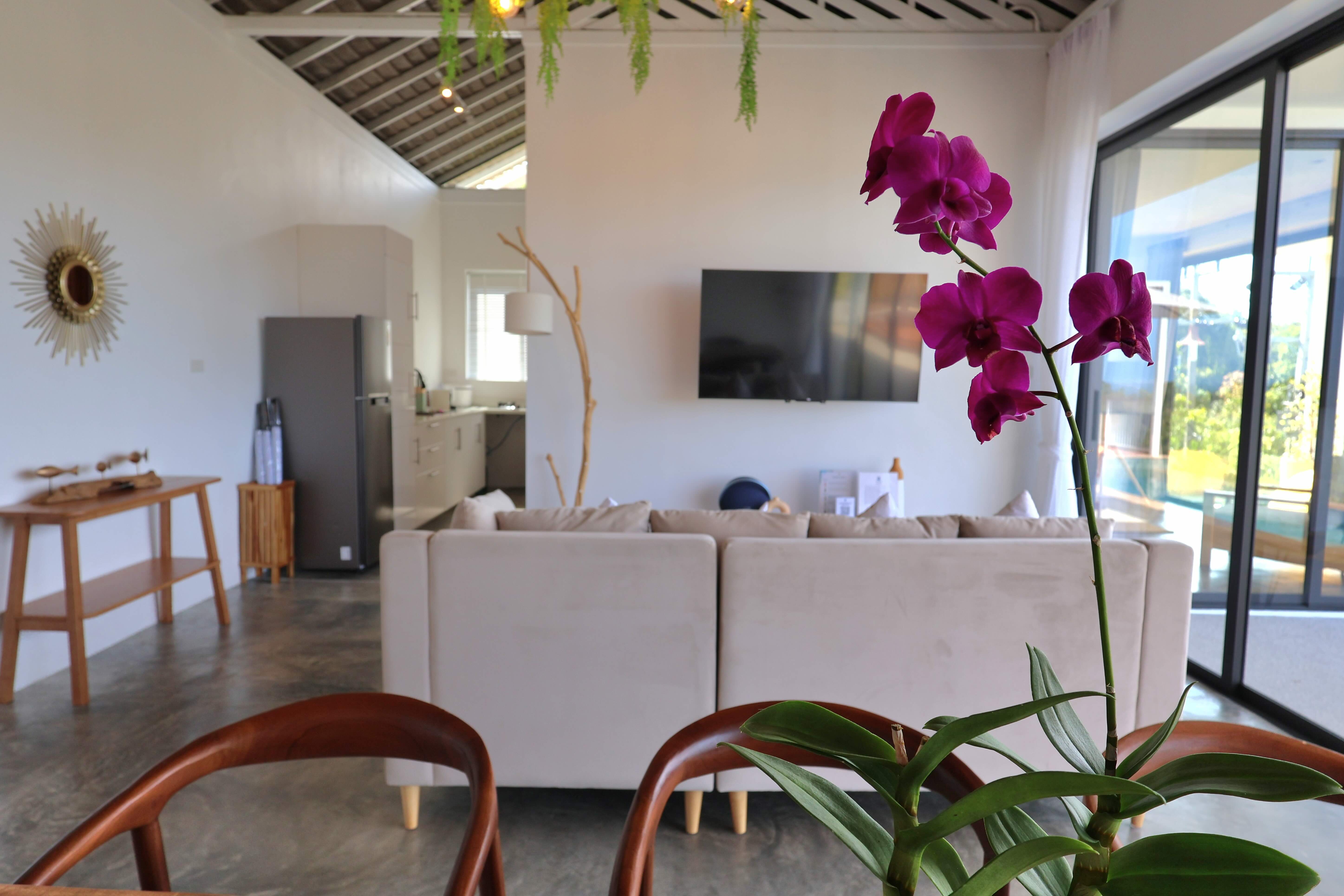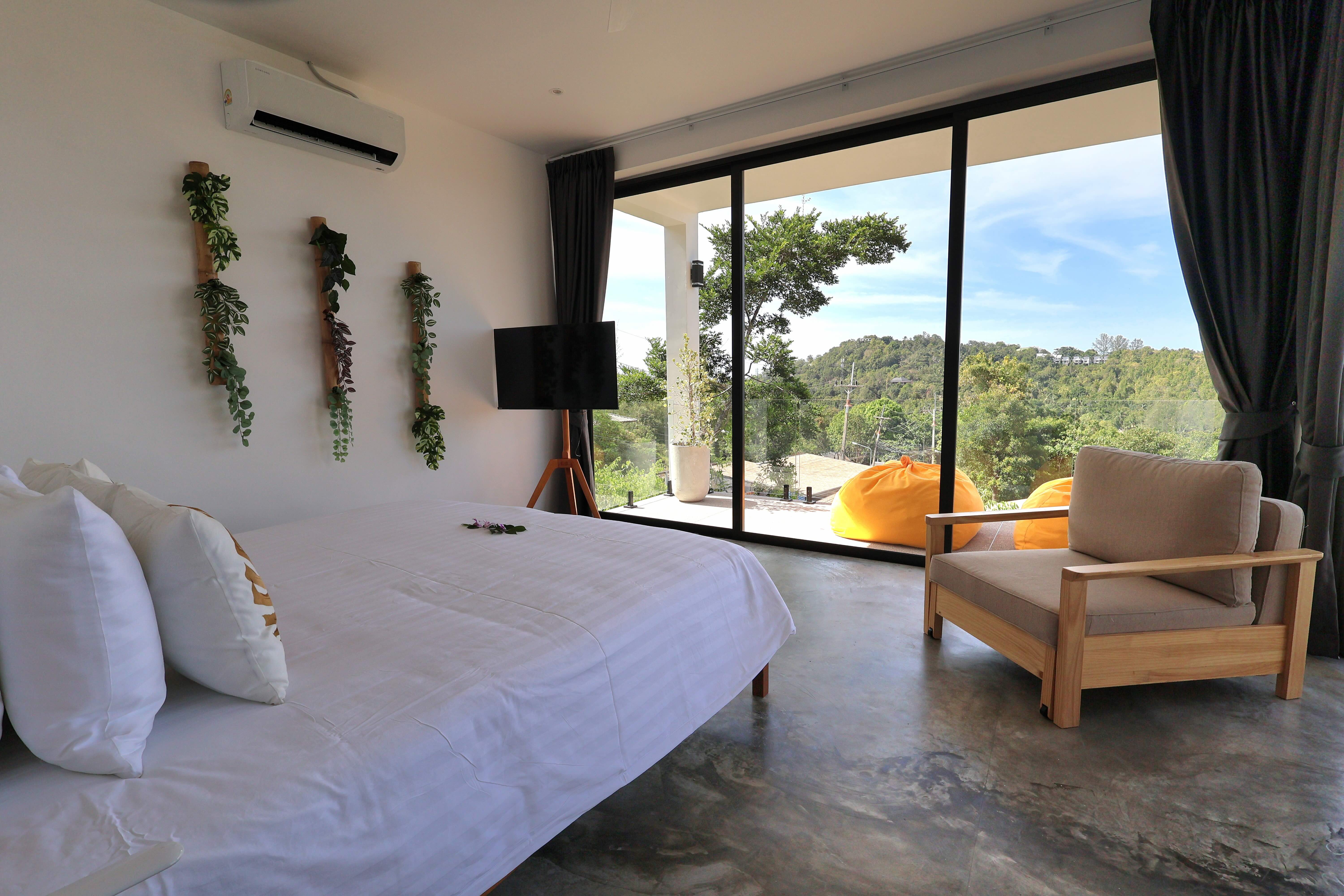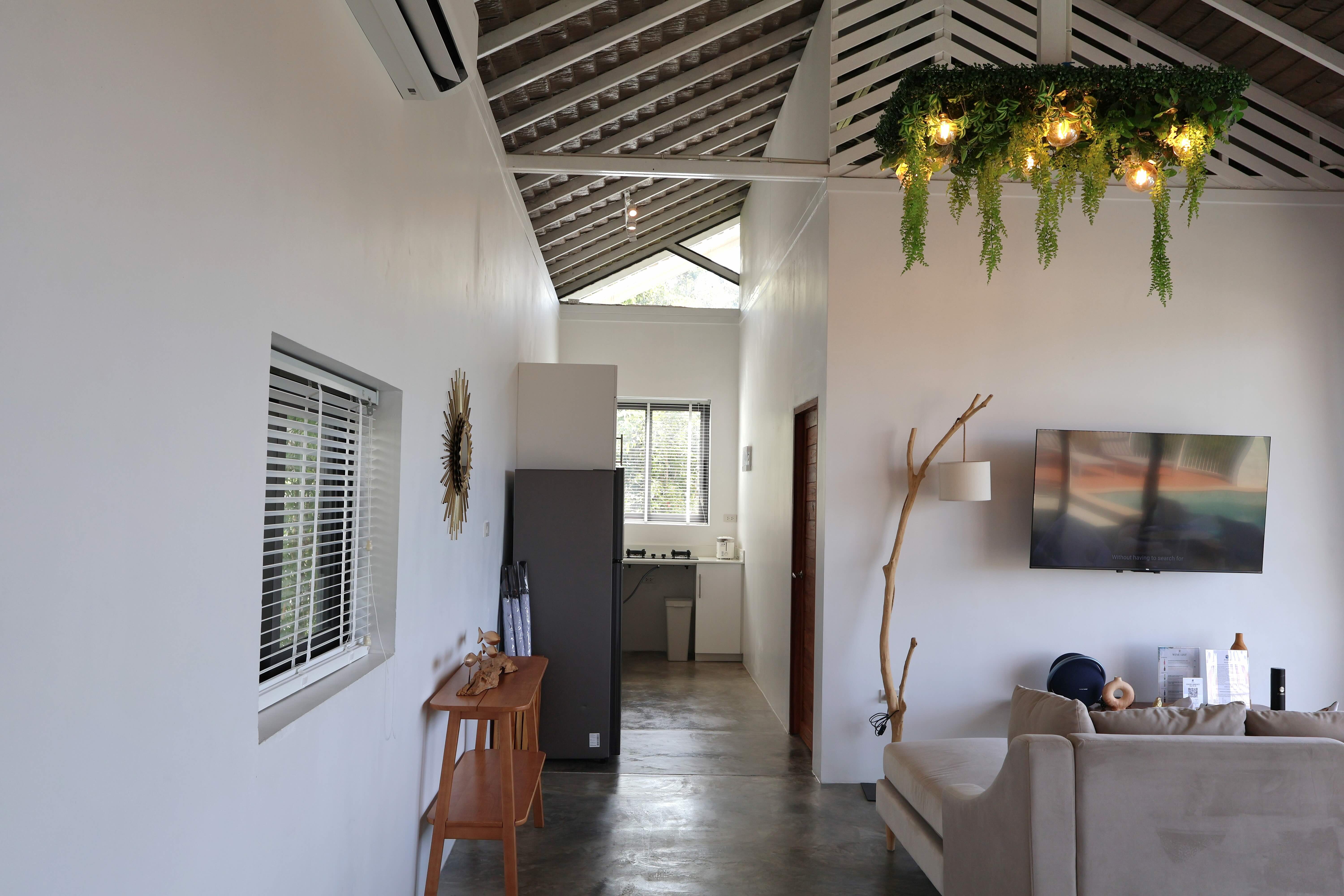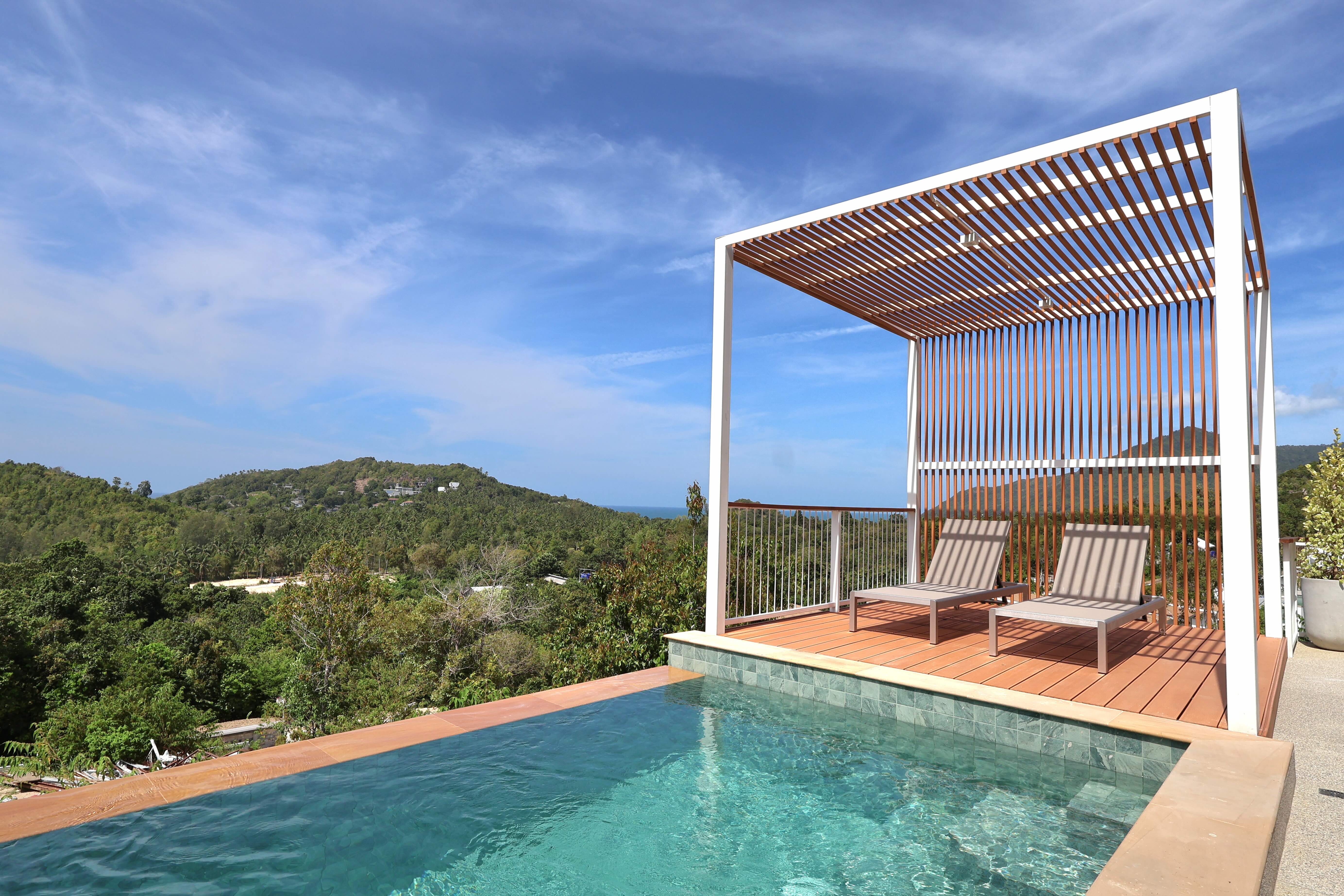 Our Golden Serenity Villa is a 2-bedroom tropical escape featuring two bathrooms, a bright living area, and a fully equipped kitchen. Designed for families or friends, it blends comfort with a relaxed island vibe. Outside, unwind by your private pool, terrace, and lounging area, enjoying the tranquil and inviting atmosphere of Koh Phangan.